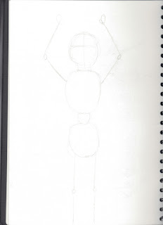 These are my human proportions. As you can see they're not very good, let me tell you why. This was the second lesson, I was ill and so missed it. So I asked my lecturer how I could catch up, she gave a hand out and said to give it a try. Lets just say I'm glad we move onto something new in the next lesson!